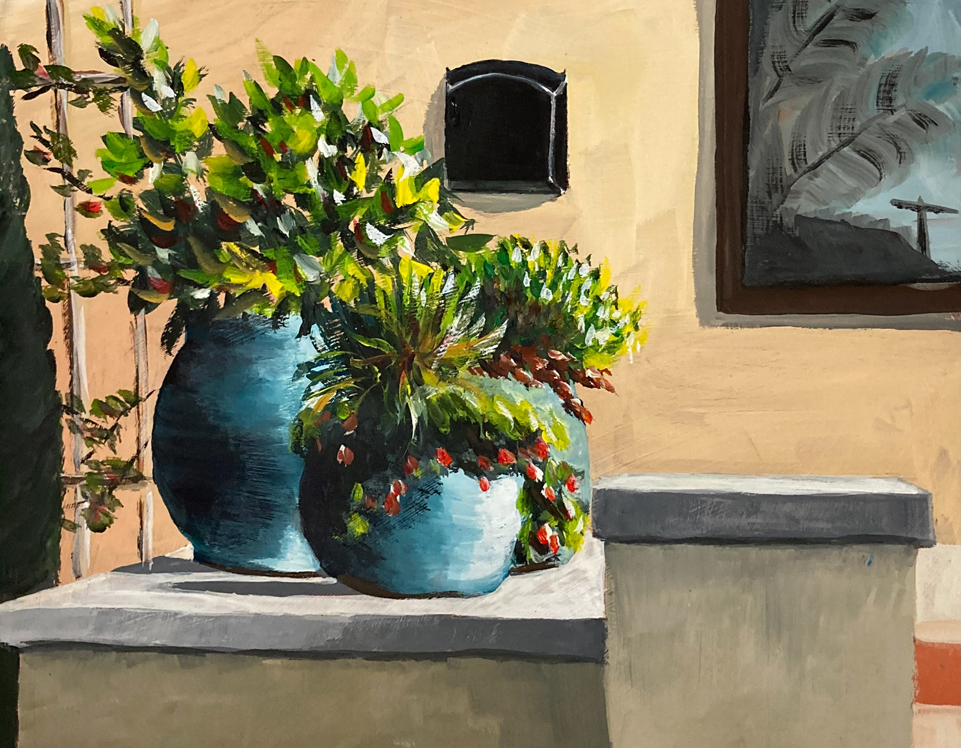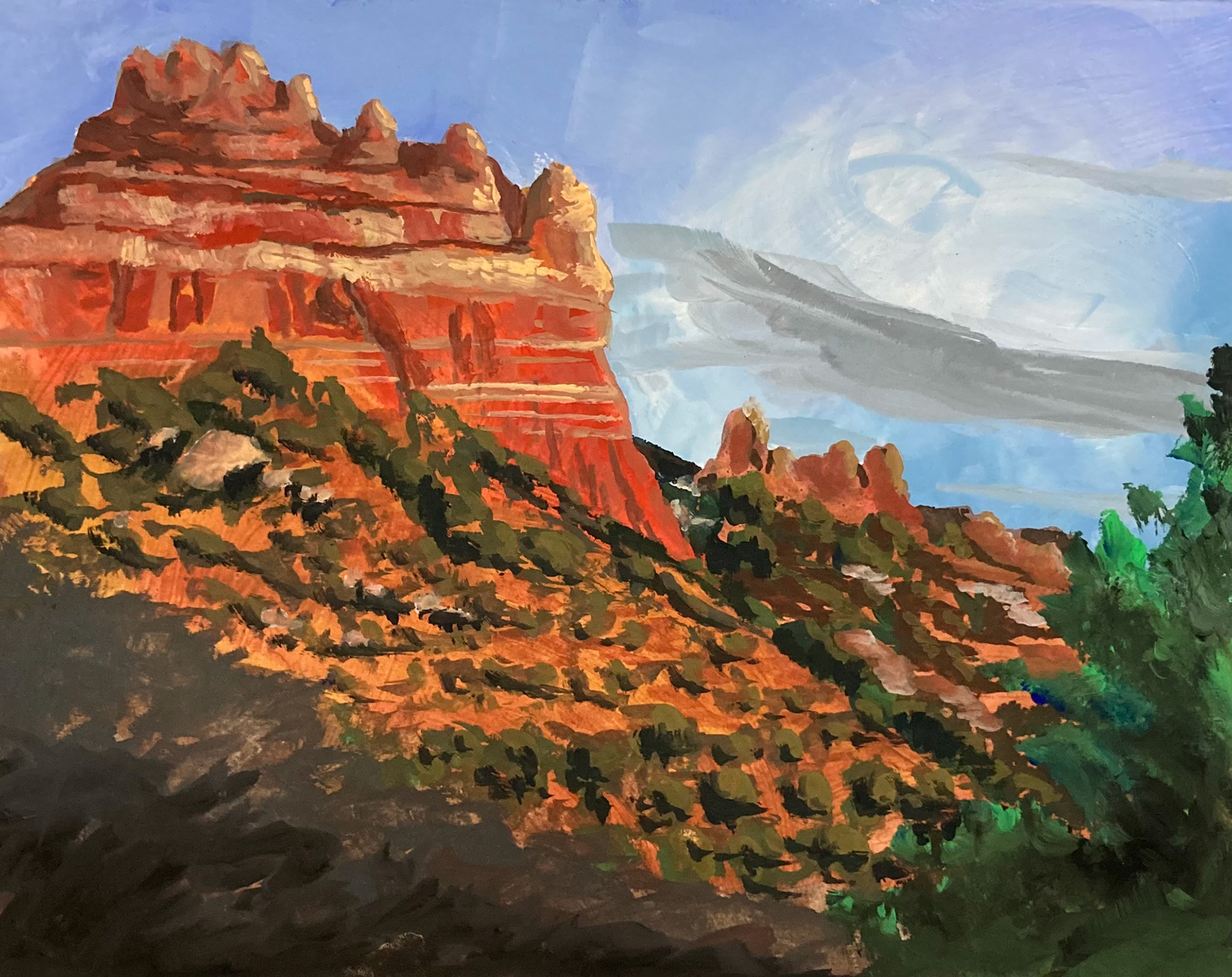 Each year I spend some time painting with media other than watercolor, particularly with acrylic and gouache paints. I think that the experiments with opaque media have improved the way I paint with transparent watercolor.